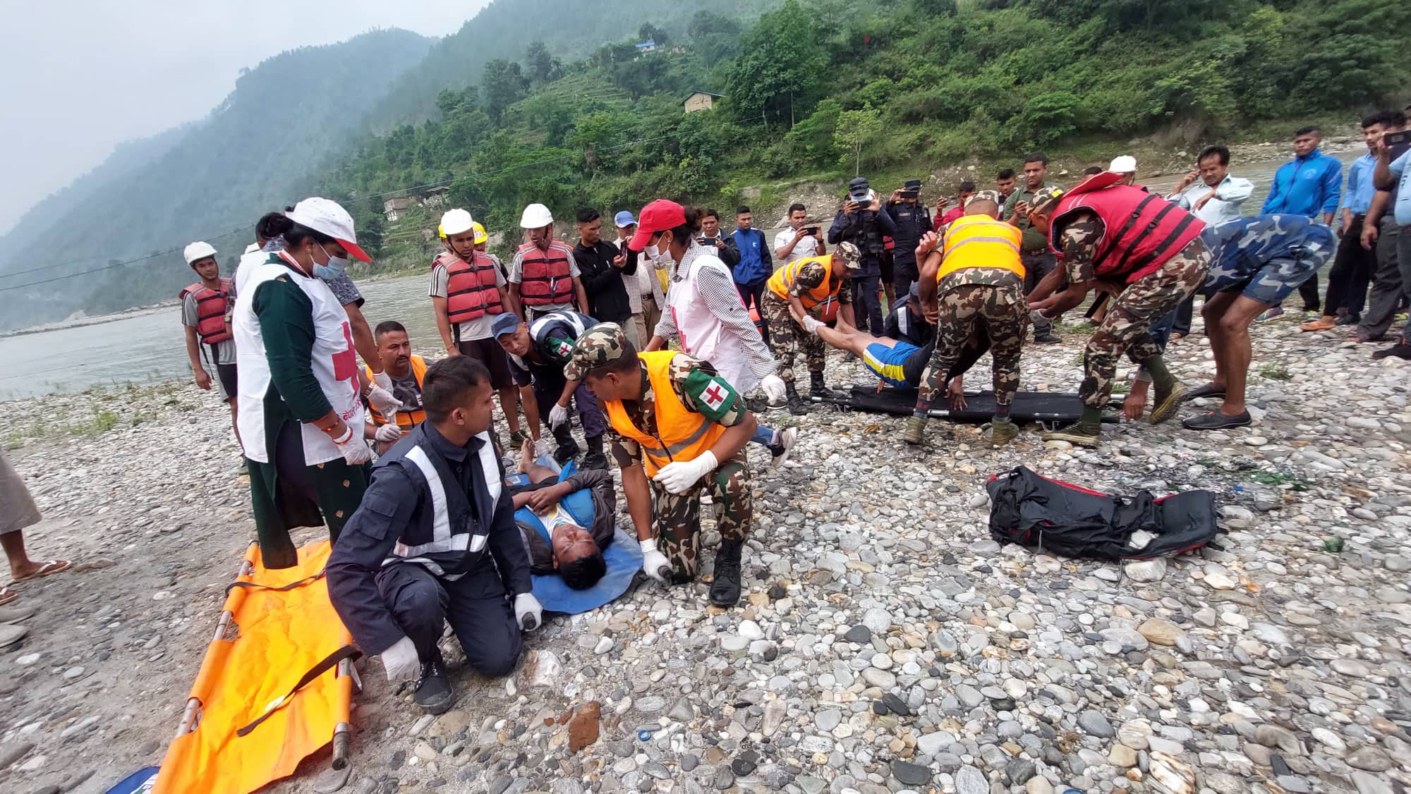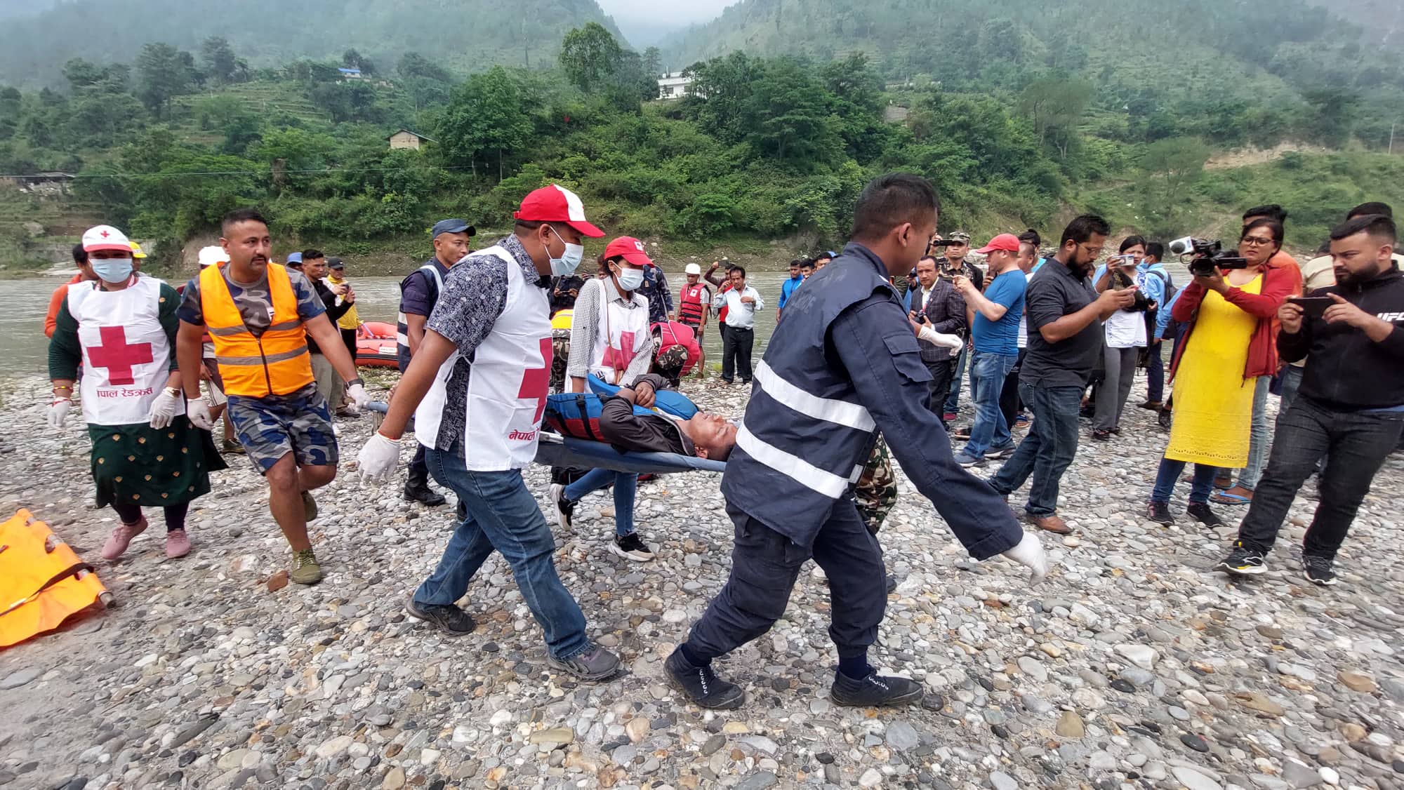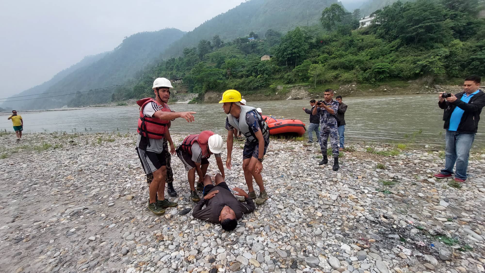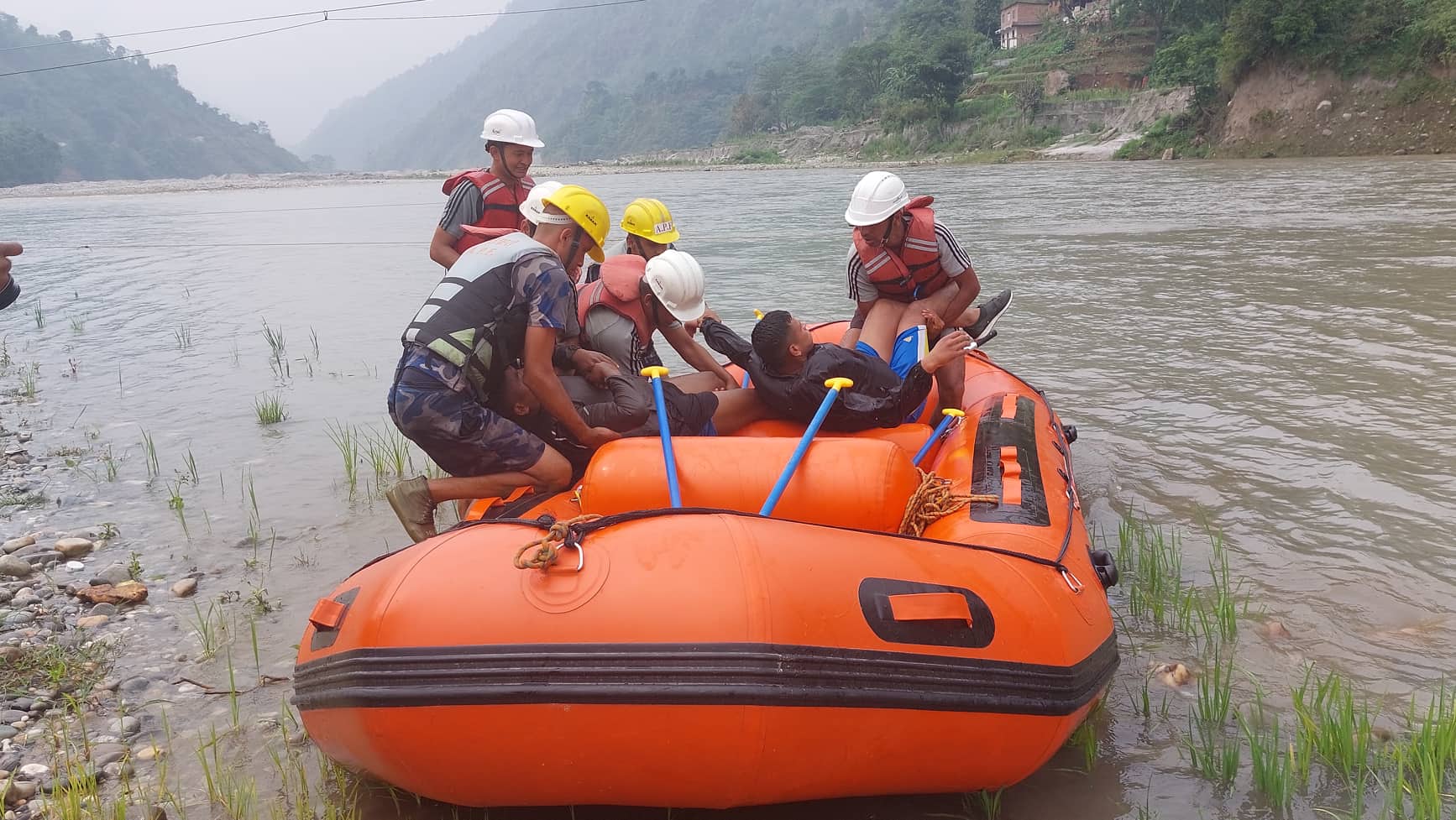 ‘विजुलीपुर गाउँका केहि युवाहरु बनभोजमा दोलालघाट आएका बखत पौडी खेल्ने क्रममा डुबेको खवर पाएसँगै सेना र प्रहरीको टोलीले उद्धार गरेका हुन्’–कालीजंग गणका गणपति कर्णेल मिलन थापाले भन्नुभयो–‘उद्धार टोलीले पौडी खेल्ने क्रममा डुबेका युवाहरुलाई उद्धारसँगै प्राथमिक उपचार पछि अस्पताल पु-याएको थियो ।’ काभ्रेको दोलालघाटमा सोमबार विहान सुनकोशी नदिमा पौडी खेलिरहेका युवाहरुको उद्धारका साथै वर्षातको समयमा ठुलो बाढी आएर अलपत्र परेका सर्वसाधारणको उद्दारका लागि जलविपद उद्धारको अभ्यास गरेको हो ।