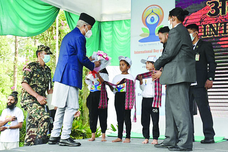 नेपालमा मंगलबार आयोजित आठौं योग दिवसको कार्यक्रममा प्रधानमन्त्री शेरबहादुर देउवा पनि सहभागी हुनुभयो । भारतीय राजदूतावासको आयोजनामा भएको सो कार्यक्रममा बोल्दै प्रधानमन्त्री देउवाले योग अभ्यासले शरीर र दिमाग दुवैलाई सकारात्मक ऊर्जा दिने र योगलाई दैनिक जीवनको एक हिस्सा बनाउनुपर्ने उल्लेख गर्नुभयो ।दूतावासका कार्यवाहक राजदूत नामग्य सी खम्पाले स्वागत मन्तव्य दिँदै योगको प्राचीन परम्परा नेपाल–भारतको साझा सभ्यता र सम्पदा रहेको चर्चा गर्दै यसलाई सम्पूर्ण मानवजातिको कल्याणका लागि विस्तार गर्नुपर्छ भन्नुभयो ।