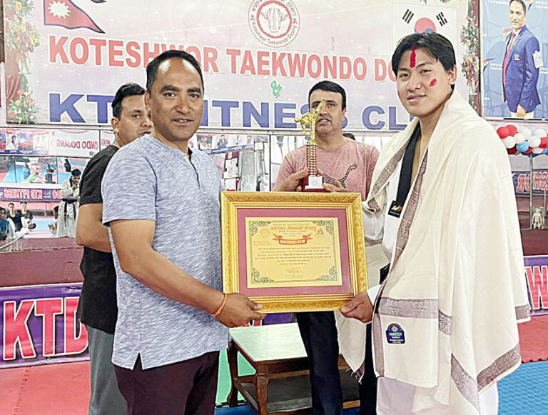 कोटेश्वर तेक्वान्दो डोजाङले तेक्वान्दो खेलाडी विश्वराज श्रेष्ठलाई सम्मान गरेको छ । विश्वराज कोटेश्वर तेक्वान्दो डोजाङकै खेलाडी हुन् । अस्ट्रेलियामा भएको दुई फरक अन्तर्राष्ट्रिय तेक्वान्दो प्रतियोगितामा २ स्वर्ण र १ कांस्य जित्दै डोजाङका साथै देशको प्रतिष्ठा अभिवृद्धि गरेकोमा सम्मान गरिएको डोजाङले जनायो ।