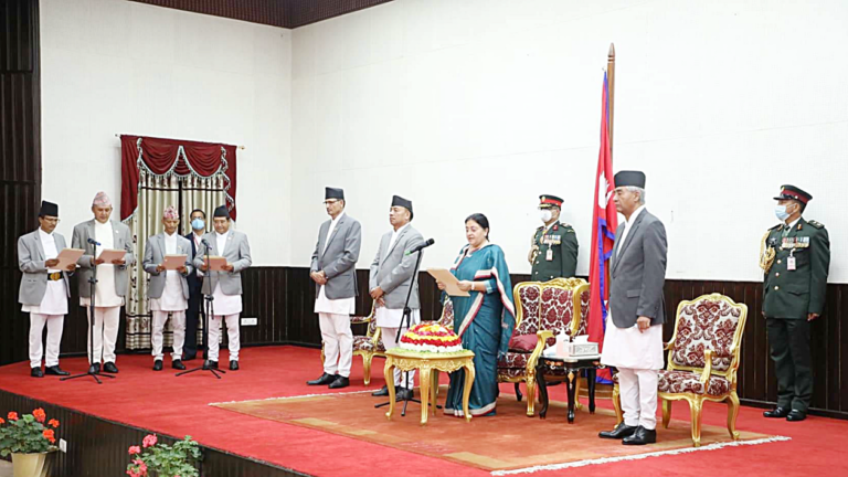 सोमबार राष्ट्रिपति विद्यादेवी भण्डारीले प्रधानमन्त्री शेरबहादुर देउवाको उपस्थितिमा नवनियुक्त चार मन्त्रीलाई पद तथा गोपनीयताको शपथ खुवाउनुभएको हो ।यसअघिका पर्यटनमन्त्री प्रेम आले, सहरी विकास मन्त्री रामकुमारी झाँक्री, श्रम रोजगार तथा सामाजिक सुरक्षा मन्त्री कृष्णकुमार श्रेष्ठलाई फिर्ता बोलाएको थियो । यसअघि स्वास्थ्य राज्यमन्त्री रहेका भवानी खापुङ अब स्वास्थ्य मन्त्री बनेका छन् भने हीरा केसी पहिलोपटक राज्यमन्त्री बन्नुभएको छ ।