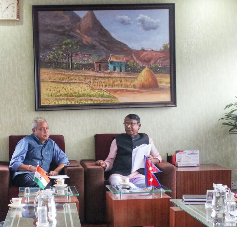 काठमाडौं । कृषि तथा पशुपक्षी विकासमन्त्री मृगेन्द्रकुमार सिंह यादवसँग नेपालका लागि भारतीय राजदूत नवीन श्रीवास्तवले शिष्टाचार भेट गरेका छन् ।