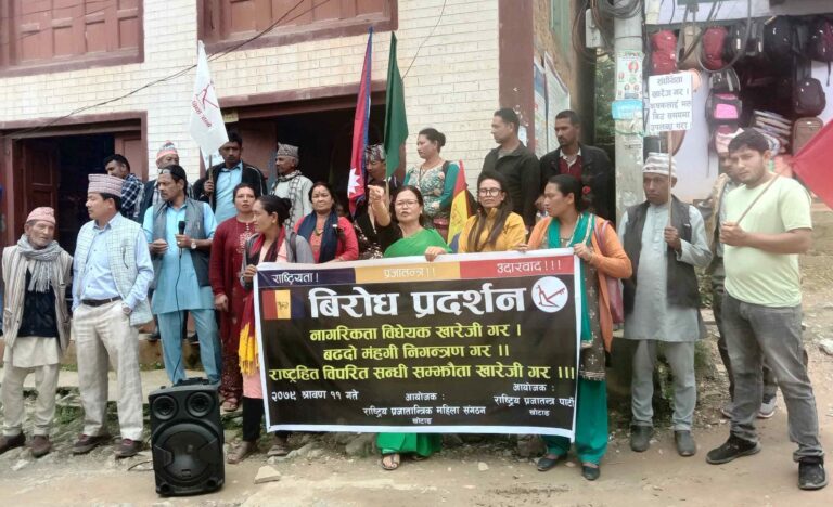 राप्रपा निकट राष्ट्रिय प्रजातान्त्रिक महिला संगठनले ‘नागरिकता विधेयक खारेजी गर, बढ्दो महँगी नियन्त्रण गर, राष्ट्रहित विपरीत सन्धि सम्झौता खारेजी गर’ लेखिएको वानरसहित जुलुस निकालेका थिए ।