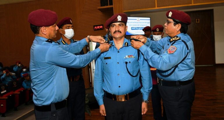 काठमाडौं । विभिन्न पदमा पदोन्नति भएका ५९ जना प्रहरी अधिकृतलाई दर्ज्यानी चिन्ह सुशोभन गरिएको छ । मन्त्रीस्तर र सचिवस्तरको विभिन्न मितिको निर्णयले प्राविधिक तथा प्रशासनतर्फका विभिन्न पदमा पदोन्नति भएका ५९ जना प्रहरी अधिकृतहरूलाई प्रहरी महानिरीक्षक धिरज प्रताप सिंहले प्रहरी प्रधान कार्यालयमा बुधबार आयोजित एक समारोहबीच दर्ज्यानी चिन्ह सुशोभन गरेका हुन् ।