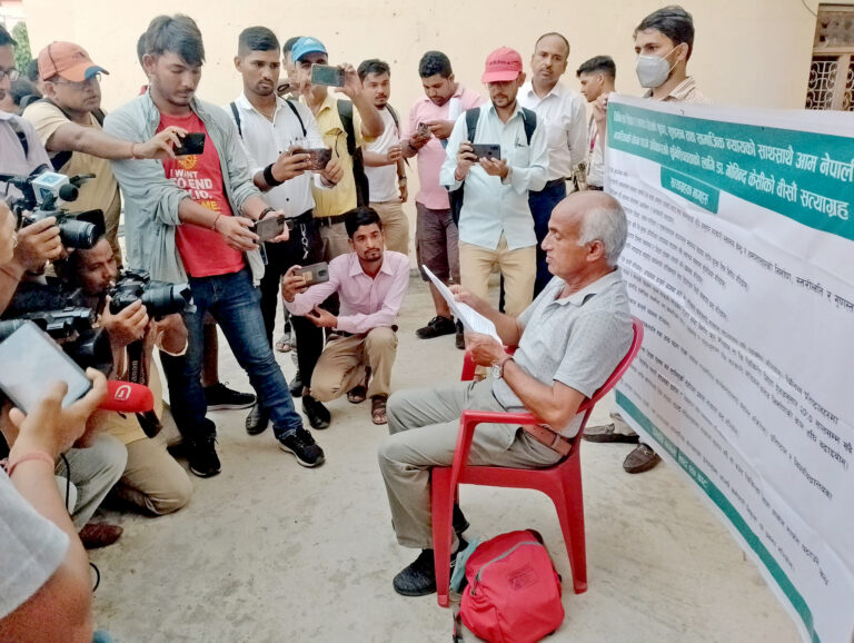 यस्तै उहाँले अर्को सन्दर्भमा बोल्दै सरकारले आफ्ना मागहरूमा सरकारले ‘रेसपोन्स’ नगरेकोले सत्याग्रहमा बस्न बाध्य बताउनुभयो । उहाँले केही महिनाअघि आफूले सरकारसँग राखेका माग पूरा गर्न सरकारलाई दुई साताको अल्टिमेटम दिएको बताउनुभयो । ‘प्रधानमन्त्रीकै गृह क्षेत्रमा सत्याग्रह बसेपछि माग सम्बोधन हुन्छ कि भनेर धनगढी पुगेको हुँ’– उहाँले भन्नुभयो ।