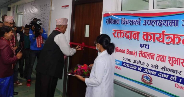 संविधान दिवसको अवसरमा कार्यक्रमको आयोजना गरेर रामेछाप नगरपालिका प्रमुख लवश्री न्यौपानेले ब्लड बैकको उद्घाटन गर्नु भएको हो । उद्घाटन कार्यक्रममा बोल्दै प्रमुख न्यौपानेले रगत अभाव हुँदा नागरीले चरम समस्या भोग्नु परेकाले जिल्ला अस्पतालमै ब्लड बैंकको स्थापना गरेको बताउनुभयो ।