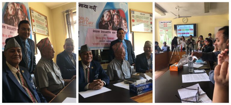 नेपालमा शिक्षा, गरिबी, चेतनाको कमी तथा सेवाको पहुँचको कमी आदि कारणबाट दृष्टिविहिनताको स्थिति अझै प्रमुख स्वास्थ्य समस्याका रुपमा विद्यमान छ । नेपालमा आँखा स्वास्थ्य सेवाका क्षेत्रमा गैरसरकारी संस्थाहरुको भूमिका उल्लेखनीय रहँदै आएको छ । देशका दुर्गम तथा समाजका तल्लो तहमा रहेका सर्वसाधारणसम्म सहज र सुलभ रुपमा पु¥याउने, नेपाल सरकारसँगको महत्वपूर्ण सहकार्य, निर्देशन तथा अन्तर्राष्ट्रिय विकास साझेदारहरु तथा जनसमुदायको उल्लेख्य साथ र सहयोगमा आँखा स्वास्थ्य सेवालाई गाउँदेखि सहर तथा दुर्गम हिमाली क्षेत्रदेखि तराईसम्म बिस्तार गरेको र सकारात्मक परिणामहरु आएको जानकारी गराईयो ।