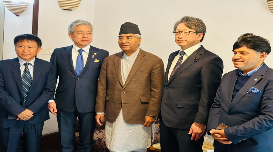 नेपाल– जापान सम्बन्धलाई अझै फराकिलो बनाउने उद्देश्यले बुधबार नेपाल आएको तीन सदस्यीय टोलीले प्रधानमन्त्री दाहाल, नेपाली काँग्रेसका सभापति शेरबहादुर देउवा र उपप्रधान तथा अर्थमन्त्री विष्णुप्रसाद पौडेलसँग भेटगरी छलफल गरेको हो ।
