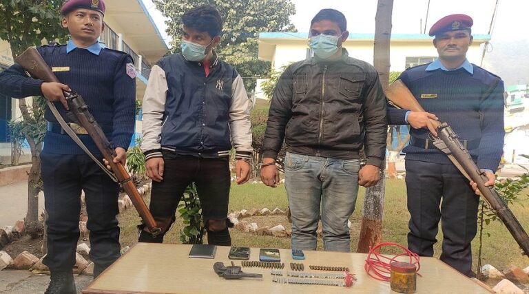 रोयल ग्रुप नामक समूह बनाई व्यवसायी र उद्योगीलाई फोनबाट धम्काउँदै रकम असुली गर्ने तयारीमा जुटेको पूर्व जनमुक्ति सेनाका लडाकु सहित २ जनालाई हतियार सहित रुपन्देही प्रहरीले पक्राउ गरेको छ । कुख्यात अपराधी मनोज पुनको घटना दोहोराउने रणनीतिका साथ बुटवलमा योजना बनाइरहेको अपराधीक टोलीलाई प्रहरीले पक्राउ गरी मंगलवार पत्रकार सम्मेलन गरी सार्वजनिक गरेको हो ।