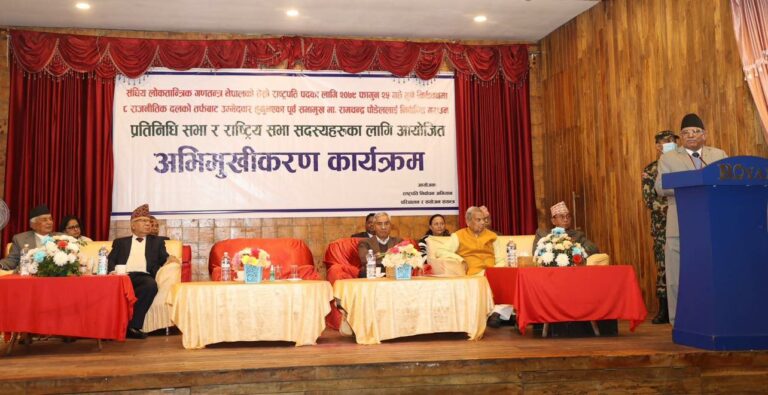 ‘अघिल्लोपटक संविधानविपरीत संसद विघटन भएपछि हामी सबै संविधान र लोकतन्त्रको पक्षमा उभियौँ । संसद पुनर्स्थापना गर्न सडकसम्म गयौँ । हाम्रो गठबन्धन लोकतन्त्र र संविधानको रक्षाका निम्ति थियो, विकास र समृद्धिको जनचाहना सम्बोधन गर्न थियो ।