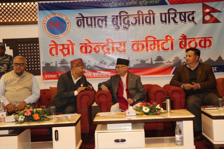 भक्तपुरको गठ्ठाघरमा आज आयोजना गरिएको नेपाल बुद्धिजिवी परिषद्को केन्द्रीय समिति बैठकलाई सम्बोधन गर्दै उहाँले एमाले जस्तो देश बनाउने पार्टी चुनाबमा हार्छ भने देशको राजनीति र जनताको चेतनास्तर कहाँ छ भन्ने बुझ्न सकिने टिप्पणी गर्दै एमाले जस्तो पार्टी बिरुद्ध सबै तिरबाट प्रहार गर्न खोज्नु देशकै लागि दुर्भाग्य भएको बताउनु भयो ।