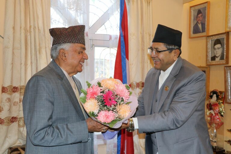 राष्ट्रपतिको निजी निवास बोहोराटारमा शुक्रबार बिहान भएको भेटमा सभामुखले नवनिर्वाचित राष्ट्रपति पौडेललाई बधाई तथा सफल कार्यकालको शुभकामना दिएका छन् ।