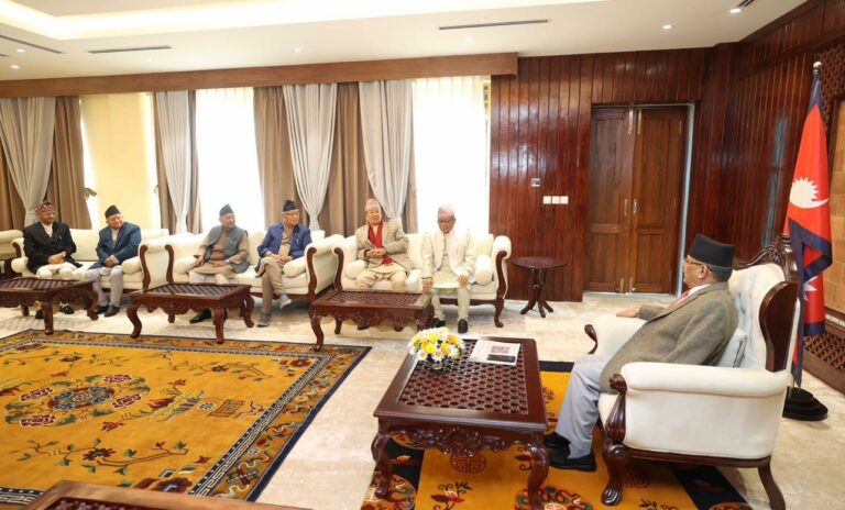 काठमाडाैं । प्रधानमन्त्री पुष्पकमल दाहाल प्रचण्डले प्रदेश प्रमुखहरुले भेट गरेका छन् । बुधबार बालुवाटारस्थित प्रधानमन्त्रीको सरकारी निवासमा पुगेर प्रदेश प्रमुखहरुले प्रधानमन्त्री प्रचण्डलाई भेटेका हुन् ।