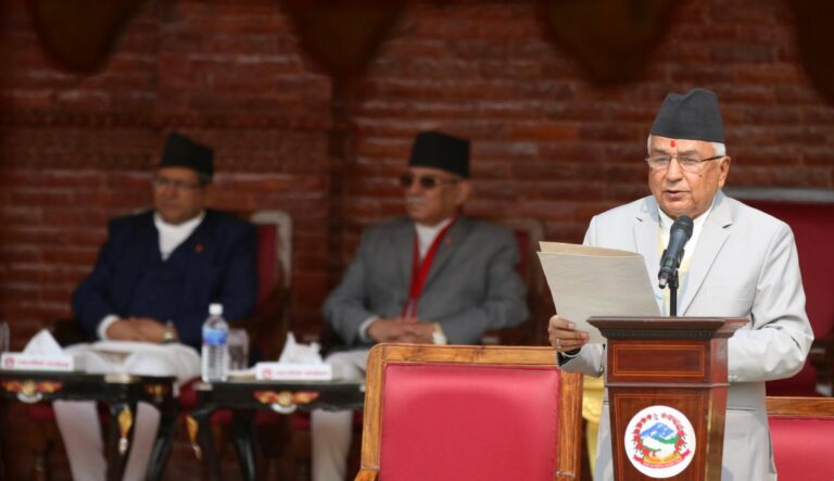 राष्ट्रपति संस्थाले निर्वाह गर्ने भूमिकाले संविधान र शासन व्यवस्थाको अभ्यास प्रभावित हुनेमा सजग रही निर्दिष्ट कार्यसम्पादन गर्दा निष्पक्षता, तटस्थता तथा विधिको पालनामा प्रतिबद्ध रहने राष्ट्रपति पौडेलले प्रण गर्नुभएको छ ।