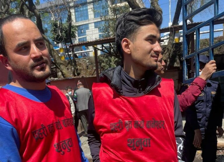 मंगलबार प्रधानमन्त्री प्रचण्डविरुद्ध नाराबाजी गर्नेमा सोलुखुम्बुका २३ वर्षीय उद्धव बस्नेत, बझाङका १८ वर्षीय विप्लव खड्का र बाग्लुङ सोम शर्मा छन्।