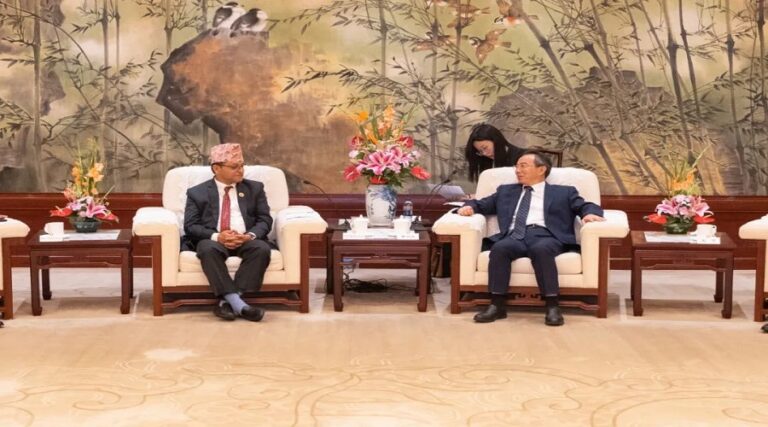 चीनको औपचारिक भ्रमणमा रहनुभएका राष्ट्रियसभाका अध्यक्ष गणेशप्रसाद तिमिल्सिनासंग चीनको सांघाई म्युनिसिपल पिपुल्स कङ्ग्रेस स्थायी समितिका अध्यक्ष डोङ युन्हुले शिष्टाचार भेट गर्नुभएको छ ।