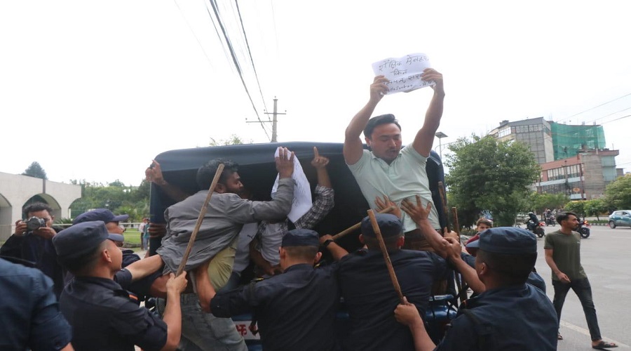 बुधबार नयाँ बानेश्वरस्थित संसद भवन अगाडि प्रदर्शन गर्ने क्रममा प्रहरीले उनीहरूलाई पक्राउ गरेको छ ।
