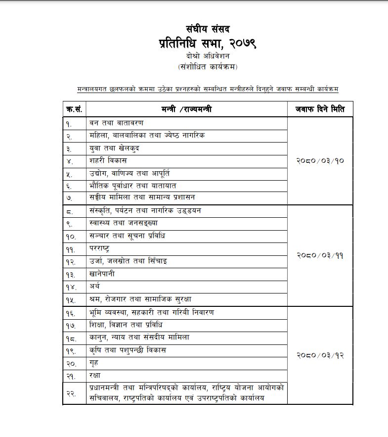 हिजोको प्रतिनिधि सभाको बैठकमा विनियोजन विधेयक २०८० अन्तर्गत संघीय मामिला तथा सामान्य प्रशासन र स्वास्थ्य तथा जनसंख्या मन्त्रालयको छलफल सकिएको थियो ।