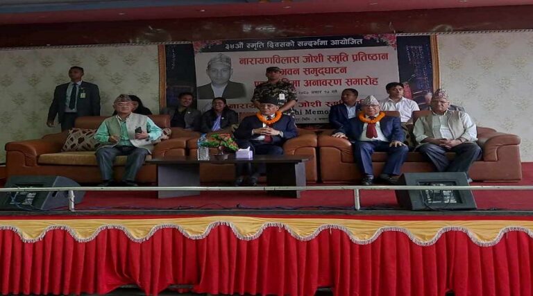 आज भक्तपुरमा आयोजित नारायणविलास जोशीको ३४ औँ स्मृति दिवस कार्यक्रमलाई सम्बोधन गर्दै उहाँले राजनीतिक क्रान्तिको काम सम्पन्न भइसकेकाले अब जनताको जीवनलाई सुखी, समृद्ध र जनतालाई समानता, अवसर, रोजगारीको हिसाबले शिर ठाडो बनाउने कामको जिम्मेवारी पूरा गर्नुपर्ने बताउनुभयो ।