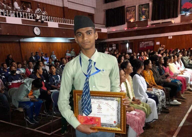 सशस्त्र प्रहरी निरीक्षक स्व.दुर्गाबावु पाठको स्मृतीमा स्थापित ‘दुर्गाबावु पाठक स्मृती संगीत पुरस्कार’ नेपाल एपीएफ स्कुलको कक्षा ९ मा अध्ययरत छात्र अर्जुन झा लाई प्रदान गरिएको छ ।