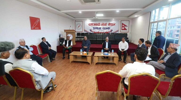 आलोकनगरस्थित नेकपा (एकीकृत समाजवादी)को केन्द्रीय कार्यालयमा आज बसेको मोर्चाको पहिलो बैठकले मोर्चाको सन्देश आम जनतामाझ पुर्याउन यही साउन महिनाभित्रै प्रदेश राजधानीमा कार्यक्रम गर्ने निर्णय गरेको हो ।
