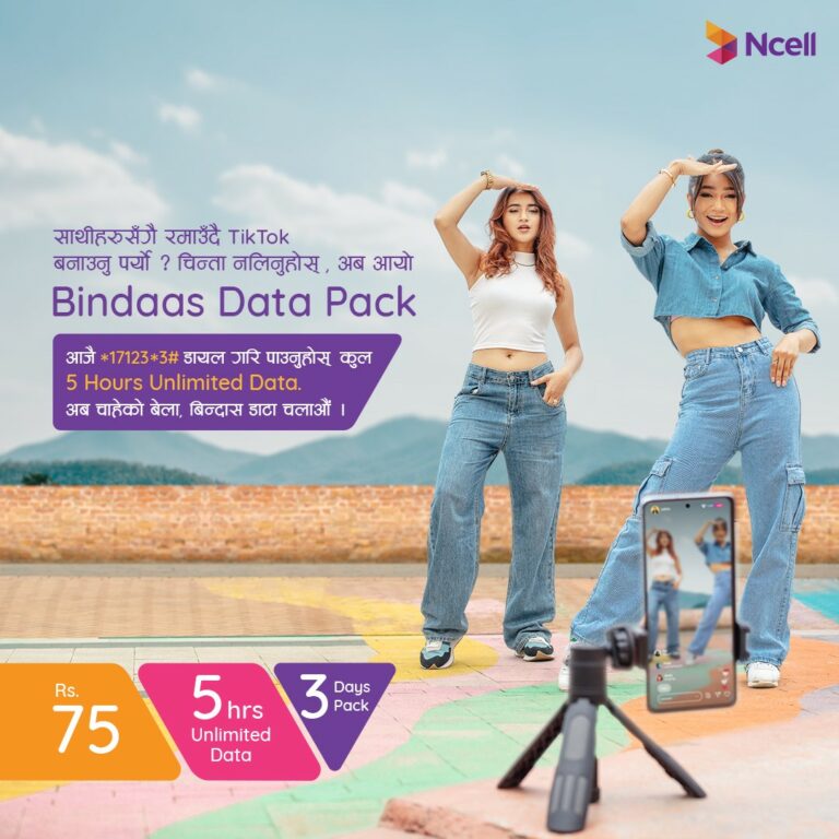 काठमाडौं । एनसेल आजियाटाले प्रयोगको समयमा आधारित आकर्षक अफर ‘बिन्दास डेटा प्याक’ ल्याएको छ ।