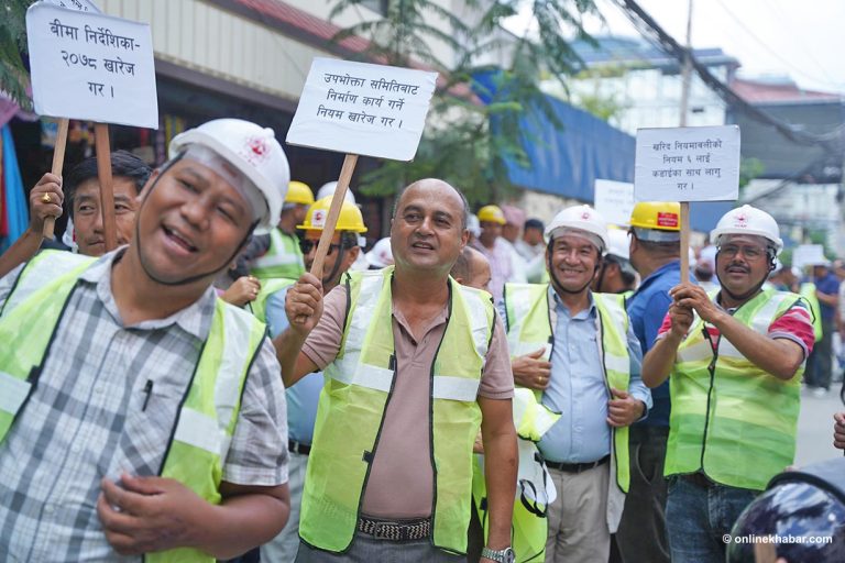 निर्माण व्यवसायीहरुले डोजर लगायतका निर्माण यन्त्रहरुसहित बालुवाटारस्थित प्रधानमन्त्री निवास नजिक विरोध प्रदर्शन गरेका छन् ।