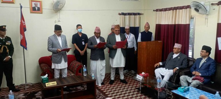 आजै मुख्यमन्त्री कमल बहादुर शाहले भूमि व्यवस्था कृषि तथा सहकारी मन्त्रीमा नागरिक उन्मुक्तिका रामेश्वर चौधरी र आन्तरिक मामिला तथा कानुन मन्त्रीका काँग्रेसका शिवराज भट्ट नियुक्त गरेका थिए राज्य मन्त्रीमा नागरिक उन्मुक्तिकै कैलाश चौधरी नियुक्त भएका हुन् उनीहरु तीनै जनाको आज शपथ गराइएको हो ।