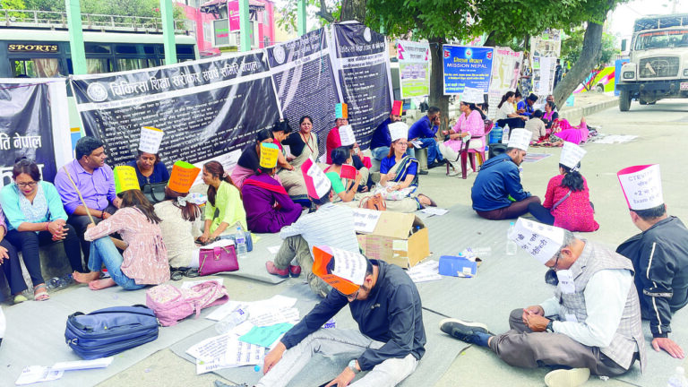 आयोगको अत्याचार विरोधमा निजी कलेज सञ्चालक आन्दोलनमा उत्रिएका छन् । कलेज सञ्चालकहरू एक सातादेखि माइतीघर मण्डलामा आन्दोलन जारी राखेका छन् । ‘नेपालमा ४ सय २९ वटा निजी कलेजले सीटीईभीटीको सम्बन्धन लिएर स्वास्थ्यका प्राविधिक विषय पढाइरहेका थिए । चिकित्सा शिक्षा ऐन आएपछि २२ वर्षअघिदेखि चलिरहेका नर्सिङ क्याम्पसहरू बन्द भएका छन्’ –संघर्ष समितिका संयोजक निर्मल सापकोटाले भन्नुभयो ।