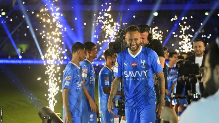 लन्डन, (एजेन्सी) । अल हिलालमा आबद्ध भएका ब्राजिलका फरवार्ड नेयमारलाई हजारौं समर्थकले भव्य स्वागत गरेका छन् । खेलाडी सार्वजनिक गर्ने कार्यक्रममा उनलाई आतिशबाजीका साथ स्वागत गरिएको हो । रियादको किंग फाहद अन्तर्राष्ट्रिय रंगशालामा उनलाई पहिलो पटक सार्वजनिक गरिएको थियो । नेयमारको जर्सी निलो रंगको रहेको छ ।