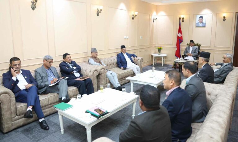 काठमाडौं । राष्ट्रिय मान्यता प्राप्त दलहरूको बैठक बसिरहेको छ । सिंहदरबारस्थित प्रधानमन्त्रीको कार्यालयमा बसेको बैठकमा संसदमा राष्ट्रिय दलको मान्यता प्राप्त राजनीतिक पार्टीका नेताहरु सहभागी छन् ।