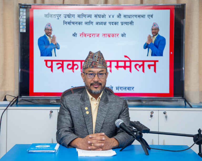 ललितपुर । झन्डै तीन दशकदेखि निजी क्षेत्रको हितका लागि क्रियाशील रवीन्द्रराज ताम्रकारले ललितपुर उद्योग वाणिज्य संघको अध्यक्षमा उम्मेदवारी दिने घोषणा गर्नुभएको छ।