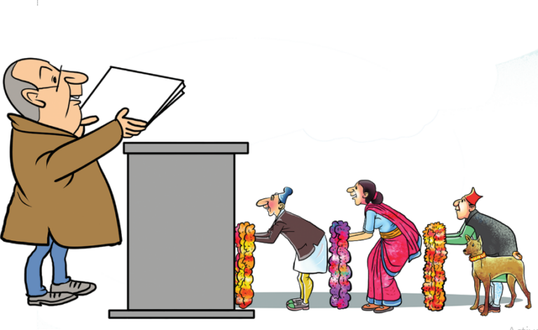 वीरकाजी झस्कियो। ठुटे नेताले मतदातालाई विभिन्न पार्टी प्रवेश गराएको र निर्वाचनमा पाँच सय हजारको नोट खल्तीमा घुसारिदिँदै सांसद, मन्त्री बनेको तथ्य बुझ्यो। अनि मनमनै प्रतिज्ञा ग¥यो– ओक्खो भो मलाई गलामा माला, खादा र निधारमा टिका धस्काएर कुनै पार्टी प्रवेश गर्नु र चुनाव जितेर सांसद मन्त्री हँुदै जेल जानु रहर छैन बरु यही भैंसी दुहेर जनताको सेवा गर्छु।
