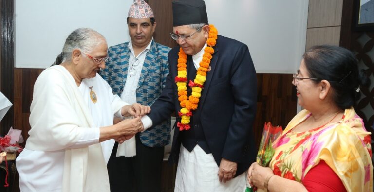 ब्रह्मकुमारी राजयोग सेवा केन्द्र काठमाडौंले रक्षाबन्धनका अवसरमा आज बालुवाटारस्थित निवासमा पवित्रता र रक्षाको सूचक राखी लगाइदिएको सभामुखको सचिवालयले जानकारी दिएको छ ।