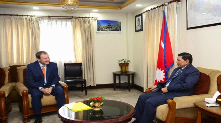 उपप्रधानमन्त्री एवम् गृहमन्त्री नारायणकाजी श्रेष्ठ र नेपालका लागि संयुक्त अधिराज्यका राजदूत रोब फेनबीच शुक्रबार शिष्टाचार भेटघाट भएको छ। गृह मन्त्रालयमा राजदूत फेनलाई स्वागत गर्दै उपप्रधानमन्त्री श्रेष्ठले नेपाल र बेलायतबीच मैत्री सन्धि भाएको सय वर्ष पुगेकोमा गर्व व्यक्त गर्दै राजदुतको कार्यकाल सफलताको शुभकामना दिए ।