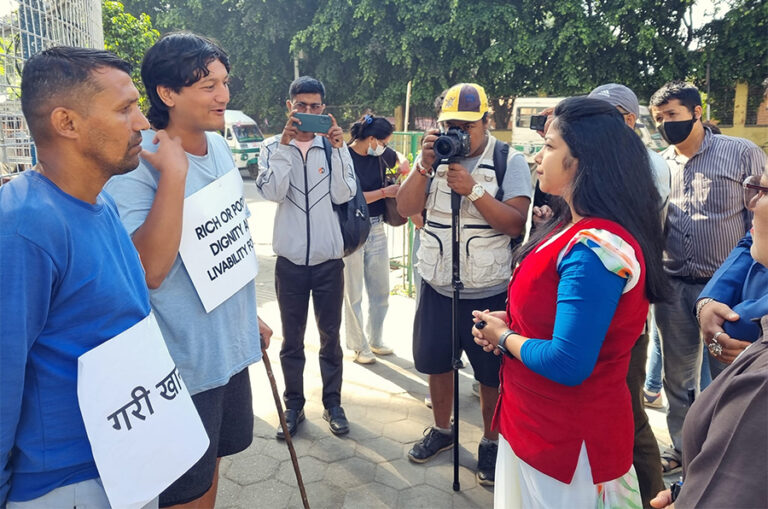 काठमाडौं महानगरपालिकाले चुनावी बाचा विपरीत वैकल्पिक व्यवस्था विना नै फुटपाथ व्यवसायीहरुलाई हटाएको विरोधमा ईः गत मंगलबारदेखि काठमाडौं राष्ट्रिय सभा गृह अगाडि उभिइरहेका छन् ।