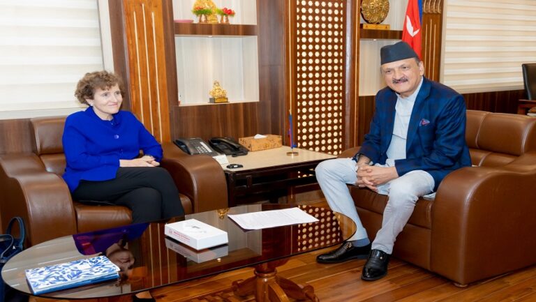 अर्थमन्त्री डा प्रकाशशरण महत र अमेरिकी सहयोग परियोजना एमसिसीका प्रमुख कार्यकारी अधिकृत (सिइओ) एलिस अल्ब्राइटको नेतृत्वमा आएको प्रतिनिधिमण्डलबीच शिष्टाचार भेटघाट भएको छ ।