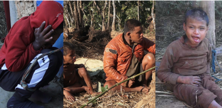 सोमबहादुर बोल्न र सुन्न सक्दैनन् भने रोशन हिँडडुल गर्न र बोल्न नसक्ने अवस्थामा छन्। बाँधेर राखिएका बालकका बुबा शिव पनि शारीरिक अपांगता भएका व्यक्ति हुन्।