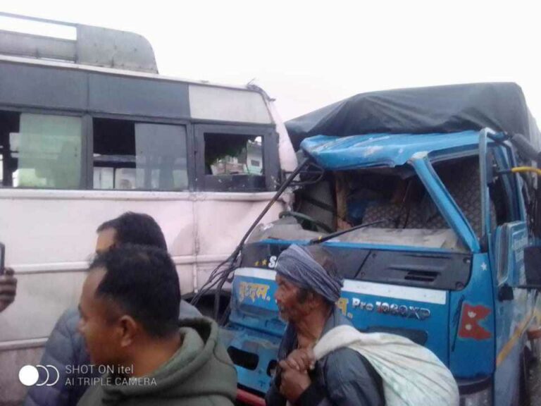 नवलपुरस्थित तीनकुने पार्क नजिक बागमती प्रदेश–०३–००१ ख ४३३ नम्बरको ट्रक र ना ४ ख ३२४ नम्बरको बस ठोक्किएर दुर्घटना भएको हो। दुर्घटनामा घाइते भएका ११ जनामध्ये ट्रकका चालक मकवानपुरको हेटौँडा उपमहानगरपालिका–३, बस्ने ४२ वर्षीय तोङश्री बहादुर गोलेको मृत्यु भएको इलाका प्रहरी कार्यालय लालबन्दीले जनाएको छ।