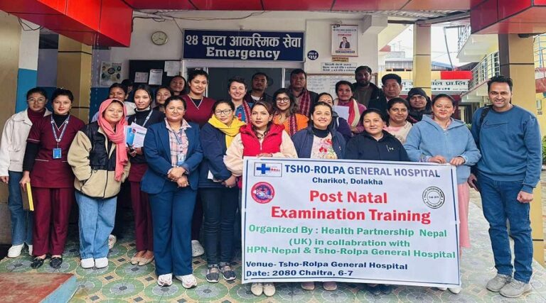 दोलखा सदरमुकाम चरिकोटमा रहेको च्छो–रोल्पा जनरल अस्पताल प्रालिमा सुत्केरी आमा र बच्चाको स्वास्थ्य परीक्षण सम्बन्धी दुई दिने तालिम सम्पन्न भएको छ । हेल्थ पाटर्नसिप नेपाल युकेको आयोजना तथा हेल्थ पार्टरसिप नेपाल र च्छो– रोल्पा जनरल अस्पताल प्रालिको सहकार्यमा तालिम सञ्चालन गरिएको हो ।