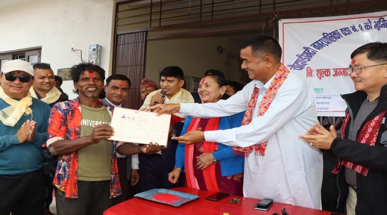 सरकारले राष्ट्रिय भूमि आयोग खारेज गरे पनि उदयपुरको चौदण्डीगढी नगरपालिकाका ३९ घरपरिवारका सुकुमबासीले आइतबार जग्गाधनी प्रमाण पुर्जा पाएका छन् ।
