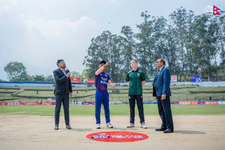 नेपाल र आयरल्यान्ड वुल्भ्सबीचको टी-२० सिरिजको दोस्रो खेल आज हुँदै छ। यस खेलमा नेपालका कप्तान रोहित पौडेलले टस जितेर पहिला ब्याटिङ गर्ने निर्णय गरेका छन्। योसँगै आयरल्यान्ड वुल्भ्सले पहिला बलिङ गर्ने भएको छ।