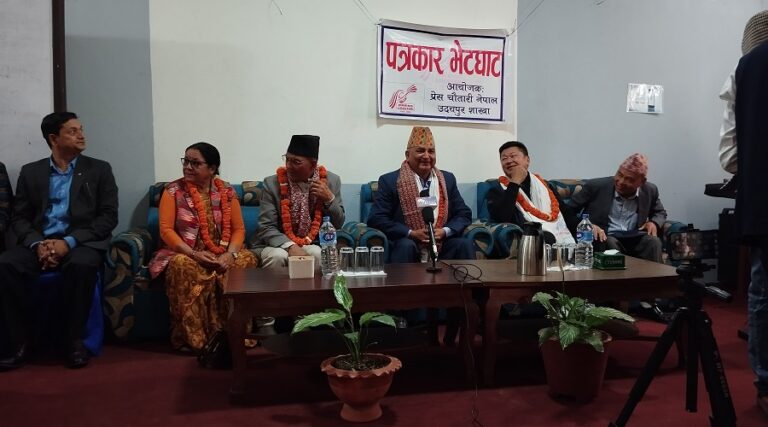 मंगलबार उदयपुरको गाईघाटमा प्रेस चौतारी नेपाल उदयपुर शाखाले गरेको पत्रकार भेटघाट कार्यक्रमा वरिष्ठ उपाध्यक्ष पोखरेलले काेशीमा एमालेको सरकार बनाउन छलफल भैरहेकाे र दलीय सहमतिका आधारमा सरकार बनाउने कुरा चलिरहेकोले आवश्यक तयारीमा लागेको बताए ।