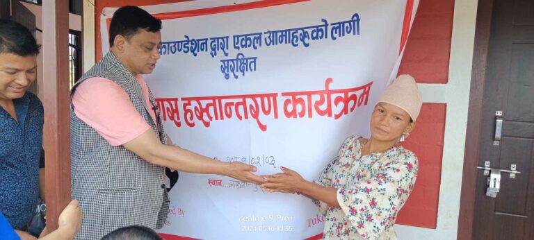 मनहरी गाउँपालिकाका ३ वटा वडाका सीमान्तकृत र अतिविपन्न चेपाङ समुदायका एकल महिलाका लागि टुकी फाउन्डेसनले बनाएको घर बिहीबार हस्तान्तरण गरिएको छ ।