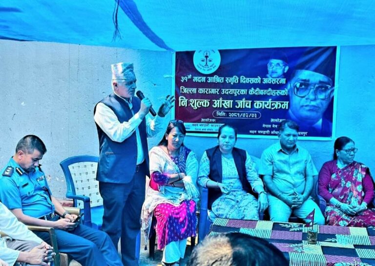 उदयपुरको सदरमुकाम गाईघाट स्थित जिल्ला कारागारमा मदन भण्डारी आँखा उपचार केन्द्रको सहयोगमा कैदी बन्दीहरुको निशुल्क आँखा जाँच गरिएको छ । मदन आश्रित स्मृति दिवसका दिन कारागार कार्यालय उदयपुरमा रहेका २२४ जना पुरुष र १२ जना महिला गरी २३६ जना कैदी बन्दीहरुको निशुल्क आँखा जाँच गरिएको हो ।