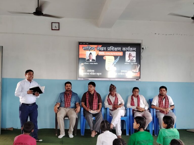 उदयपुरको त्रियुगा नगरपालिका वडा न. १२ मा रहेको सगरमाथा मोडल बोर्डिङ स्कुलका विद्यार्थीहरुकालागि शुक्रबार साहित्य लेखन प्रशिक्षण कार्यक्रम सम्पन्न भएको छ ।