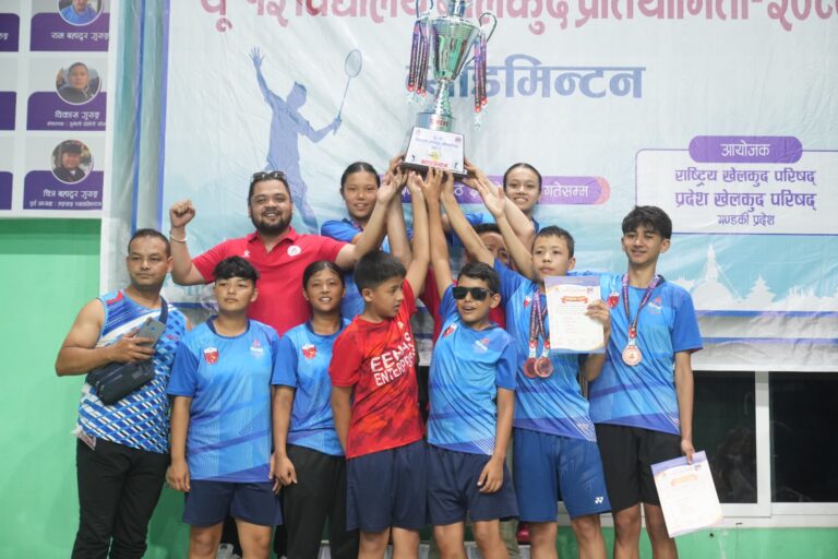 गण्डकी प्रदेश प्रथम यु–१५ विद्यालय खेलकुदको एथलेटिक्समा ४ स्वर्ण, ३ रजत र २ कांस्य जित्दै समग्रमा टिम च्याम्पियन बनेको छ। राष्ट्रिय खेलकुद परिषद् (राखेप) र प्रदेश खेलकुद परिषद्, गण्डकीद्वारा संयुक्त आयोजित प्रतियोगितामा लुम्बिनी प्रदेश दोस्रो भयो। लुम्बिनीले ३ स्वर्ण, २ रजत र ६ कांस्य जितेको थियो। तेश्रो स्थानको कर्णाली प्रदेशले ३ स्वर्ण, २ रजत र १ कांस्य हासिल गरेको थियो।