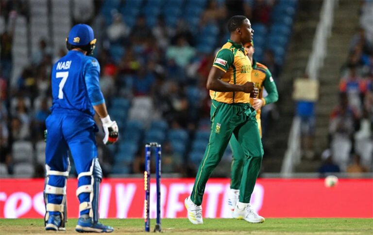 आईसीसी टी-२० विश्वकपको पहिलो सेमिफाइनलमा अफगानिस्तान ५६ रनमा अलआउट भएको छ। दक्षिण अफ्रिकाविरुद्ध टस जितेर पहिला ब्याटिङ गरेको अफगानिस्तान ११.५ ओभरमा ५६ रन बनाएर अलआउट भएको हो।