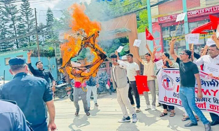 आर्मीका केन्द्रीय अध्यक्ष चन्द्रभुषण साहको नेतृत्वमा गएको नेता कार्यकर्ताहरुले बैदेशिक रोजगारका पीड़ितहरुको न्यायको माग गर्दै श्रममन्त्रीको पुतला जलाएका हुन्।