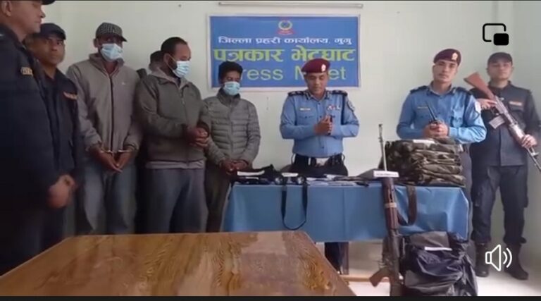 डोल्फू गाउँ लुटपाटमा संलग्नहरूलाई प्रहरी अत्याधुनिक हतियारसहित जुम्लाबाट पक्राउ गरेपछि जिल्ला प्रहरी कार्यालय मुगुले सार्वजनिक गरेको छ।