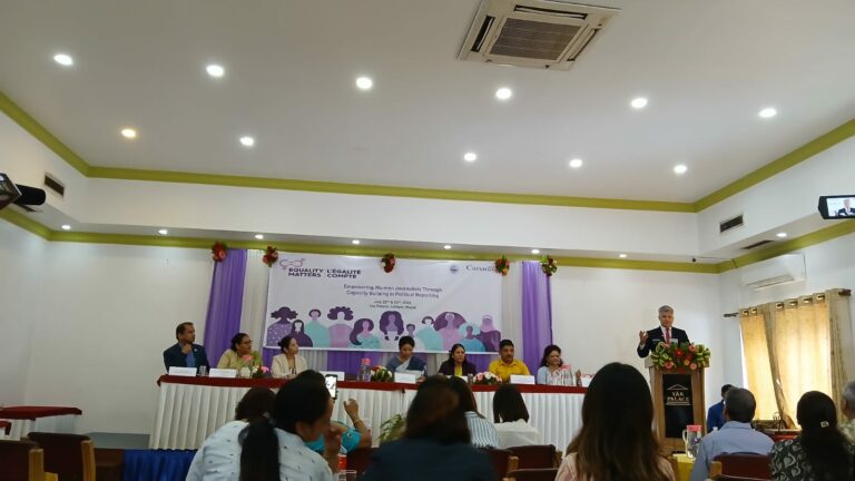 त्यस्तै, नेपालका लागि क्यानाडाका राजदूत क्यामेरोन म्याकेले नेपालमा सामाजिक न्यायमा लागि पत्रकार महिलाको उपस्थिति जरुरी रहेकाे बताए ।